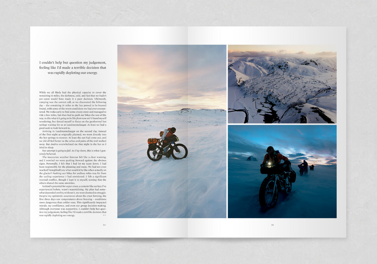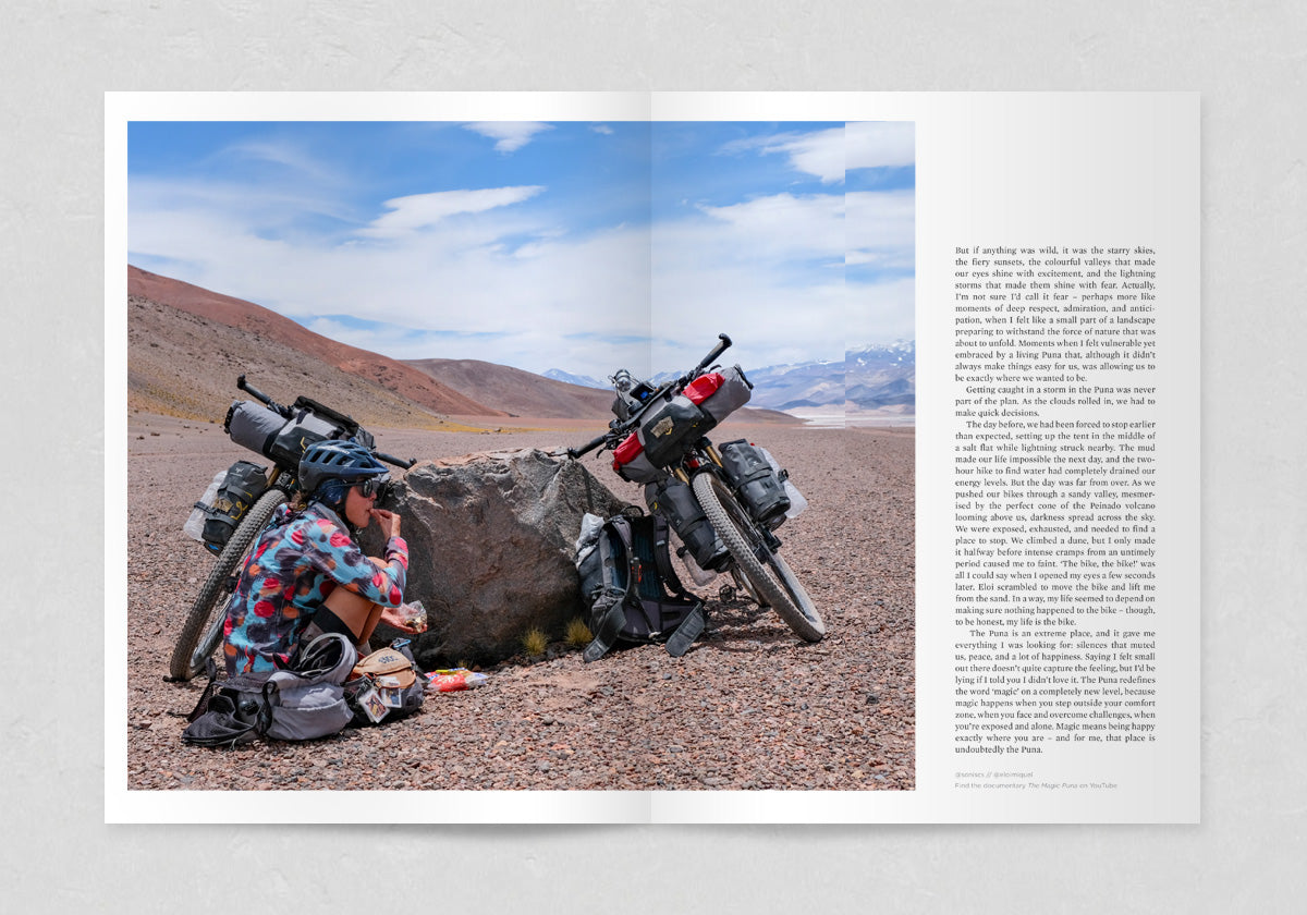 In ‘The Magic Puna’, Sònia Colomo Sala bikepacks through a hostile region of Argentina and experiences feelings she struggles to put into words. Ameena Rojee tries to see the Cairngorms of Scotland as they truly are, following in the footsteps of Nan Shepherd. And in ‘XXIV’, Sam Smoothy questions the motivations and risks of a New Zealand mountaineering project.