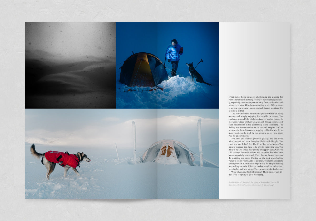 If we intentionally step beyond all we think we need, something we can only do through adventure, we find a simpler reality. Are we evaluated by how much we consume or produce, how we measure up? Or does our humanity stem from moments of deep connection to the natural world, each other, and ourselves – from the clarity of flow state and kinship with another soul? In this volume of Sidetracked we highlight stories striving to reveal the elemental through presence.
